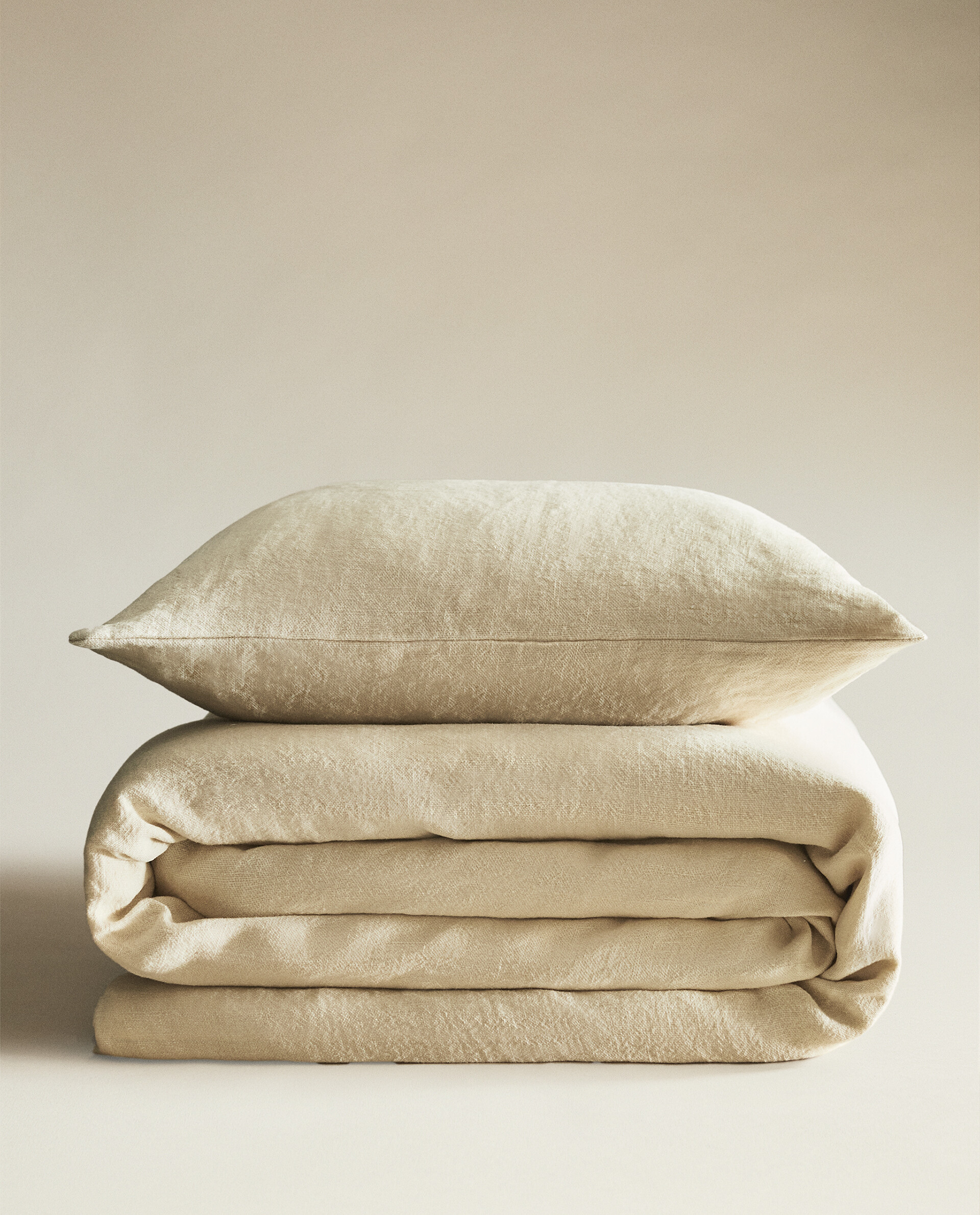Jeté en lin lavé pour structurer le lit. Deux tailles et trois couleurs neutres.